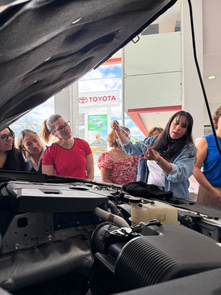 El taller fue impartido por una colaboradora del equipo técnico de los talleres de servicio de Grupo Flores, quien guio una experiencia dinámica y práctica utilizando dos modelos representativos de la marca: Toyota Hilux, reconocida por su potencia y versatilidad, y Corolla Cross, destacada por su eficiencia y tecnología. A lo largo de la jornada, las asistentes interactuaron directamente con los vehículos, aprendieron conceptos esenciales de mantenimiento preventivo y aclararon dudas frecuentes sobre el cuidado adecuado del motor y otros sistemas clave.